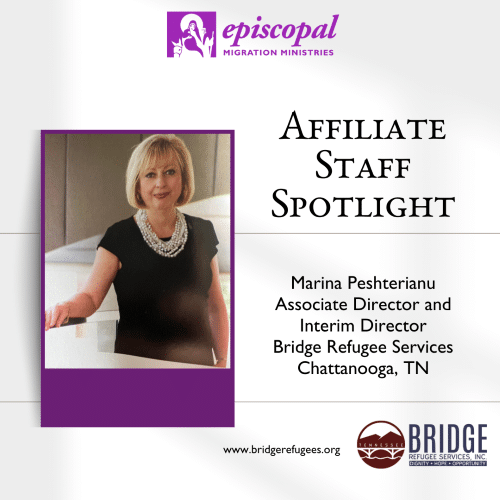 This month, we’re thrilled to shine the spotlight on Marina Peshterianu, who is marking a remarkable 25 years with Bridge Refugee Services, a resettlement agency with offices in both Chattanooga and Knoxville, Tennessee. Learn more about Bridge Refugee Services and their vital work in east Tennessee here.