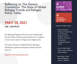 Episcopal Migration Ministries and The Episcopal Church’s Office of Government Relations hosted a webinar on the current state of refugees and refugee policy on Thursday, May 20, from 4:00 to 5:00PM ET. In addition to the Church’s migration ministry and policy staff, the event featured the following experts:
