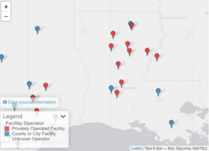 Louisiana is home to the largest number of immigration detention facilities outside of Texas. Most facilities are in remote, rural areas, making it hard for attorneys, advocates, and detainees’ families to reach them.