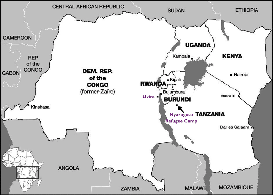 Making their way to a nearby port on Lake Tanganyika, their grandfather paid for them to board a boat to cross into Tanzania, where they were led to Nyarugusu Refugee Camp (see map above). In 1996, this was a new refugee camp, created in the middle of a forest by the Tanzanian government and the UNHCR in anticipation of further displacement following wars across the region. Under his grandfather’s care, Salemu and his cousins stayed at this camp for 18 miserable months.
