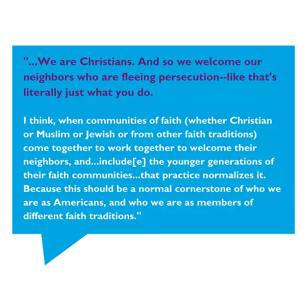 Duvall, excited for the possibilities of private sponsorship being acted upon within the U.S. resettlement landscape, says “We’re learning a lot from our Canadian friends to the north, because Canada has had a government resettlement scheme and a private sponsorship scheme for many decades. So a lot of what we’re doing in the U.S. is borrowing from our Canadian friends. So we know from Canada’s experience that this does work. And we know from our own experience in these early days, private sponsorship, that it works here as well. But it takes a lot of work. So this is something that you want a committed circle of neighbors, who care about this work passionately, to, to work to fund it, and then to work to enact it when their new neighbors arrive.”
